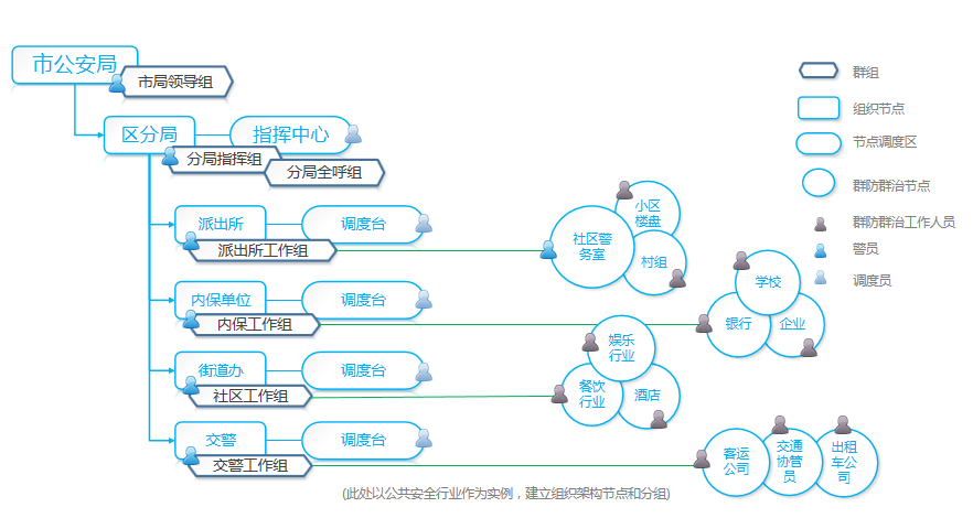 公共服务、行业、政府、警保联动的跨部门综合社会治理应急调度框架